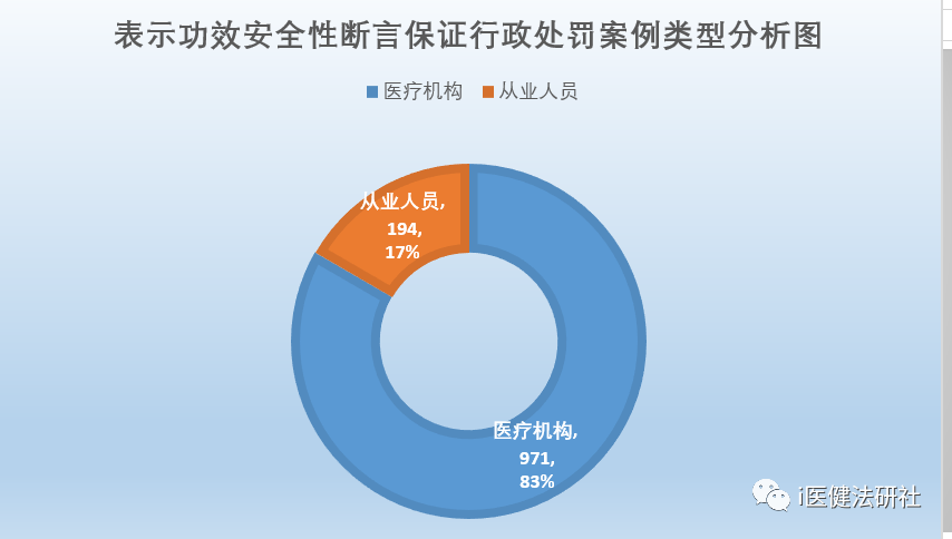 行政處罰對(duì)象為醫(yī)療機(jī)構(gòu)案件數(shù)量占比83%,處罰從業(yè)人員的占比17%。