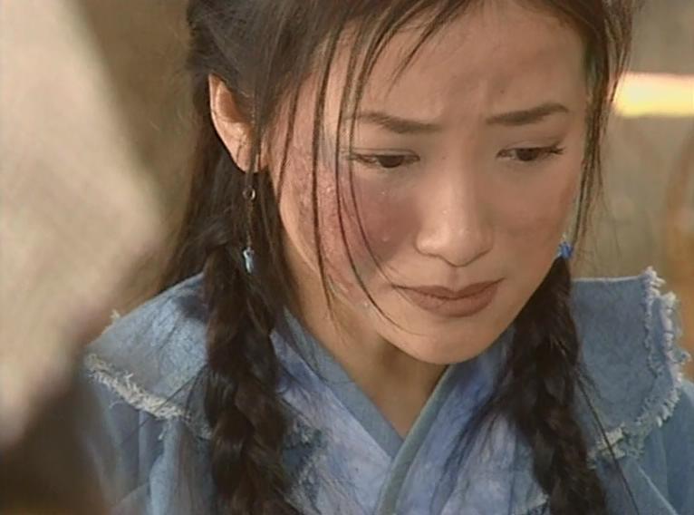 殷離并未換演員(因為演員年齡本來就已經(jīng)足夠演成年部分了),臉上涂了些東西來變丑,這版她是找自己的蜘蛛找到了無忌落入的農(nóng)舍。
