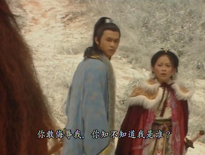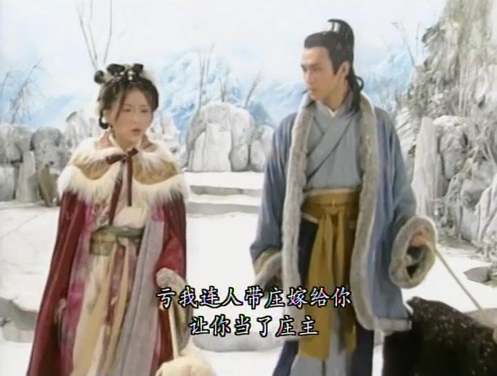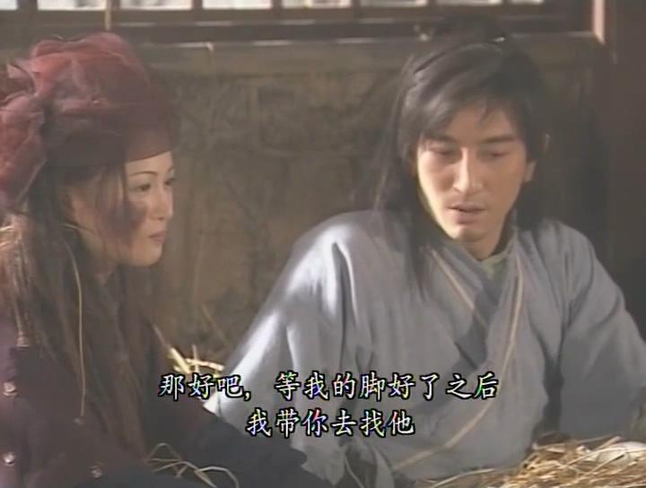 這版將原著中殷離和張無忌的交心改編成了下面一段戲,雖然是編劇自己加的,果卻還不錯。殷離背無忌出去散心,告訴了無忌自己的心事,聽她一連串講下來,無忌知道了殷離心心念念的情郎竟是自己(在原著中無忌是過了很久才知道的)。