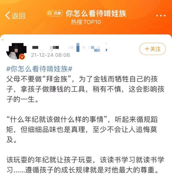 24日,#你怎么看待啃娃族#的話題也沖上了微博熱搜,很多網(wǎng)友對此發(fā)表了觀點。