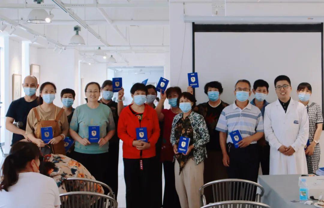 (領(lǐng)取到益潔口腔種植牙終身維養(yǎng)的市民與醫(yī)生合影)