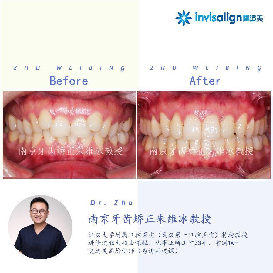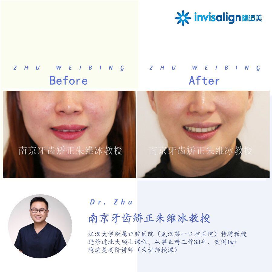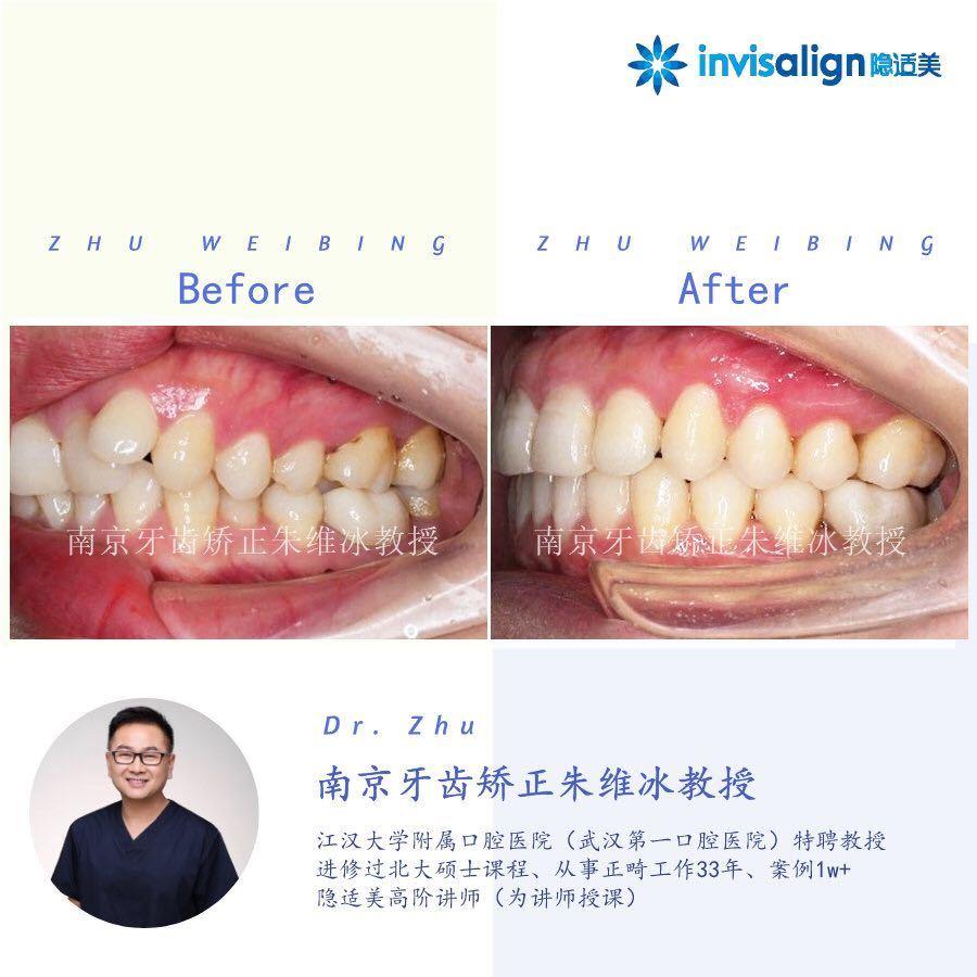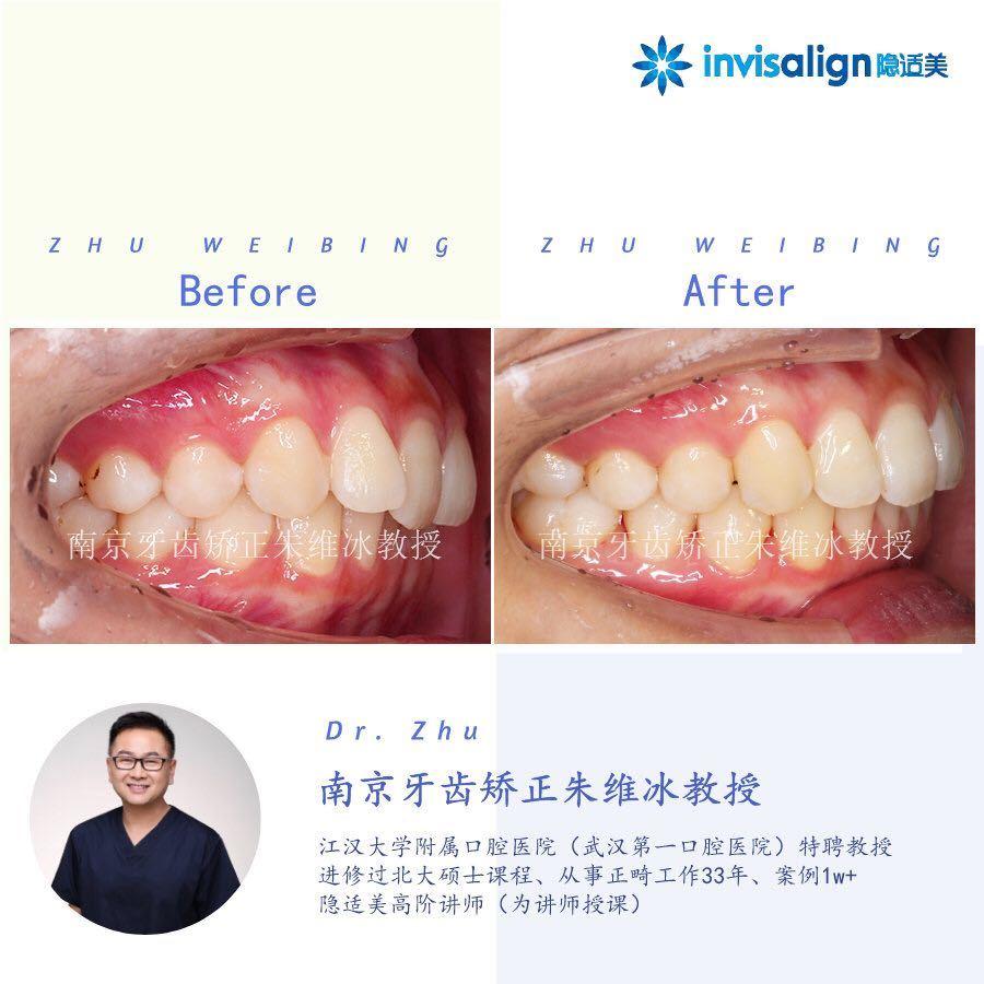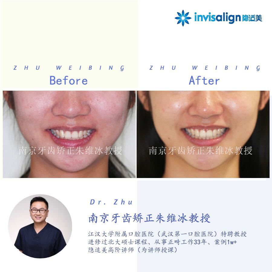 調節(jié)過程:拔除智齒,隱適美遠移牙列,排齊牙齒,糾正前牙內傾,前導下頜,改良側貌突,1年半完成