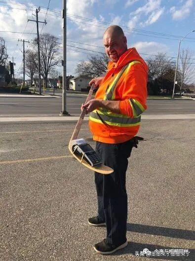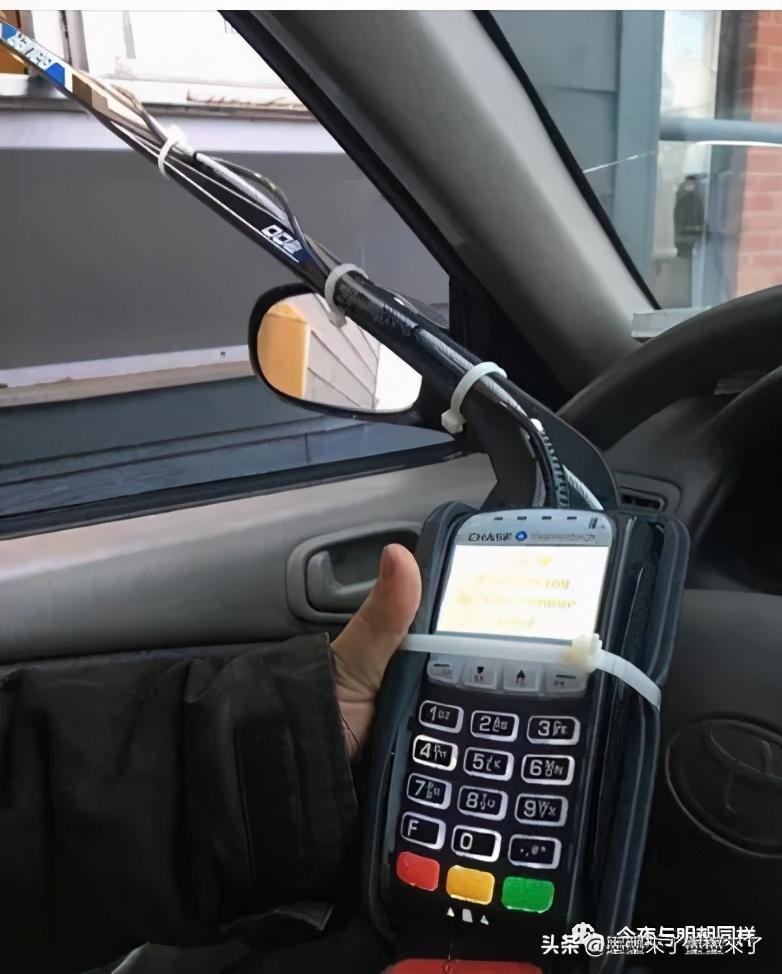 疫情期間,店員用冰球桿綁著刷卡機(jī)用于Drive Through付款。多么加拿大的方式。(圖片來自網(wǎng)絡(luò))